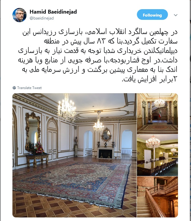 بازسازی رزیدانس آقای سفیر ایران در لندن در حالی با افتخار به عنوان دستاورد انقلاب اطلاع رسانی شده و که هیات دولت سال هاست طرح کاهش هزینه ها در اماکن ایران در خارج از کشور را در دستور کار قرار داده تا جایی که ظرف سال های اخیر به دلیل مشکلات اقتصادی دستور فروش اماکن پر هزینه و غیر ضرور به خصوص رزیدانس های سفارت خانه ها در خارج از کشور از جمله برخی کشورهای اروپایی صادر شده است.