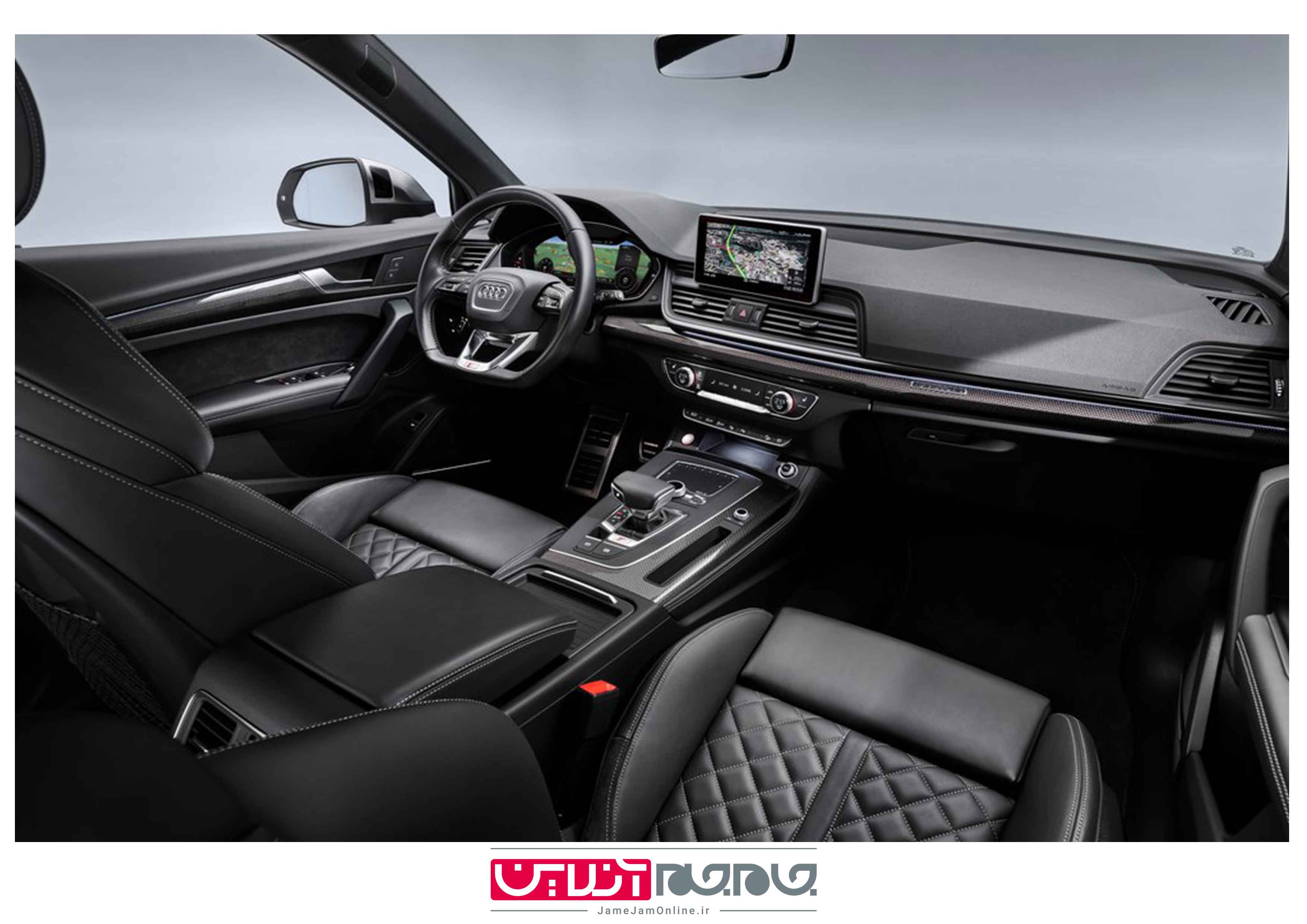 در این ماشین همچنین چراغهای جلو و عقب و راهنماها بهصورت استاندارد از نوع LED هستند. در کابین SQ5 فضای تاریکی ایجاد و ویژگیهایی چون رو رکابیهای چراغدار، صندلیهای اسپرت با روکش چرم و آلکانترا و دوخت متضاد، نشانهای منحصربهفرد SQ5، پدالهای فولادی ضدزنگ، پدالهای تعویض دندهٔ آلومینیوم مانند و… ارائه شده است. قیمت پایهٔ آئودی SQ5 TDI در آلمان از 67,750 یورو آغاز میشود و از تابستان آینده راهی نمایندگیهای فروش خواهد شد.