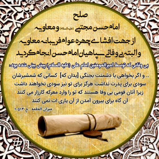 برای امام حسن(ع) این مسئله هنوز مطرح نیست. برای امام حسن(ع) حداکثر این مطرح است که اگر اینها بیایند، بعد از این چنین خواهند کرد. اینکه «اگر بیایند بعد از این چنین می کنند » غیر از این است که یک کاری کرده اند و ما الآن سند و حجتی در مقابل اینها بالفعل داریم. این است که می گویند: صلح امام حسن(ع) زمینه را برای قیام امام حسین(ع) فراهم کرد. لازم بود که امام حسن(ع) یک مدتی کناره گیری کند تا ماهیت امویها که بر مردم مخفی و مستور بود، آشکار شود تا قیامی که بناست بعد انجام گیرد، از نظر تاریخ، قیام موجّهی باشد.