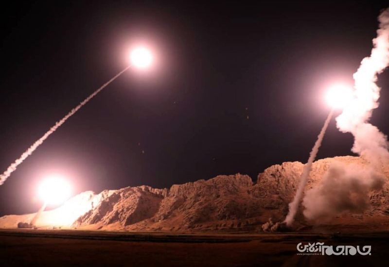 نمایی از حمله موشکی سپاه به سمت مواضع داعش در سحرگاه ۹ مهرماه