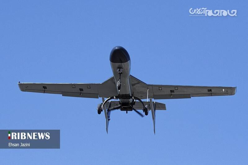 پهپاد کمانــ۱۲؛ سامانه الکترواپتیکی پایدارشده زیر دماغه قابل مشاهده است