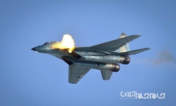 جنگنده میگ29 نیروی هوایی ارتش ایران در حال آتش با توپ 30 م م
