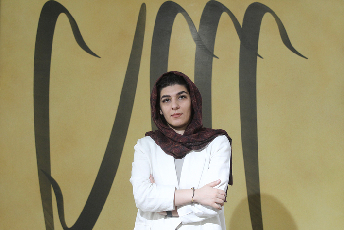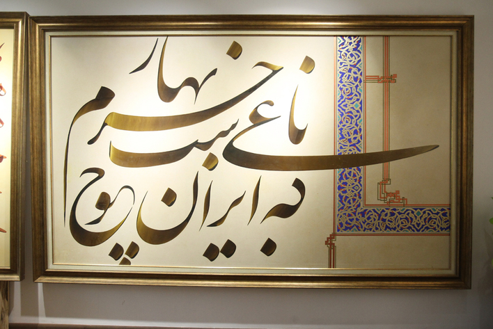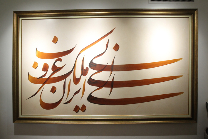 نیلوفر ذوالفقاری، هنرمند جوان خوشنویسی است که برای اولین بار در این عرصه با اندازه قلم ۱۲ تا ۱۶ سانتی متر تابلوهایی با ابعاد دو و نیم متر تا شش متر خلق کرده است.عکاس: مجید آزاد
