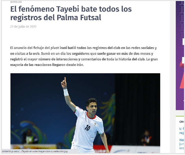 باشگاه اسپانیایی با انتشار بیانیه ای از شکسته شدن رکوردهای بازدید تاریخ این باشگاه با جذب کاپیتان تیم ملی فوتسال ایران خبر داد.