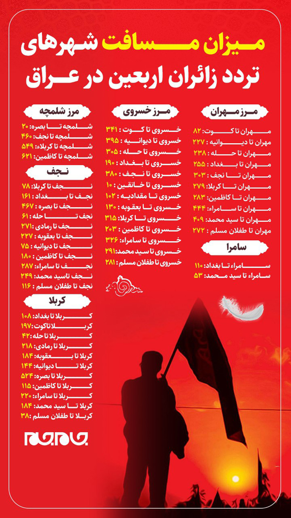 اینفوگرافیک | میزان مسافت شهرهای تردد زائران اربعین در عراق