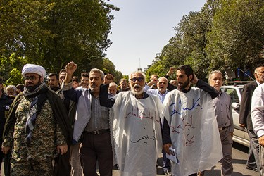 نمازگزاران تبریز امروز حرکات اخیر هنجارشکنانه اغتشاشگران را محکوم کردند.برخی راهپیمایی کنندگان در طول مراسم با بر تن کردن کفن و سر دادن شعارهای «مرگ بر آشوبگر، منافق مسلح اعدام باید گردد»، «بیر بئله لشگر گلیب به عشق رهبر گلیب» (این همه لشکر آمده به عشق رهبر آمده) و «بیزاؤلماغا حاضیروخ، خامنهای سربازیوخ» و «بسیجی لر جان وِیر ـ ولایته قان ویر»اقدام آشوبگران در تخریب و آسیب به اموال عمومی را محکوم کردند و خواستار برخورد با آشوبگران و فتنه گران شدند.