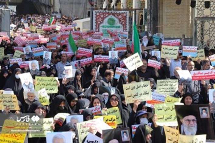 مردم سراسر ایران بعد از اقامه نمازجمعه ۱ مهر ۱۴۰۱ در اعتراض و محکومیت رفتار اغتشاشگران و توهین آنها به مقدسات، دست به راهپیمایی زدند.