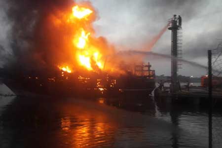 به گزارش جام جم آنلاین، حجت خسروی صبح روز دوشنبه ۴ مهر اظهار کرد: به دنبال اعلام اضطرار تلفنی به مرکز رسیدگی به اضطرارهای دریایی دیلم مبنی بر آتش سوزی یک فروند موتور لنج باری در حوضچه بندر دیلم، هماهنگی لازم انجام و بلافاصله شناور سار ۳ در ساعت۶:۴۵ دقیقه به موقیعت اعزام و اطفاء حریق از طریق دریا آغاز شد.
