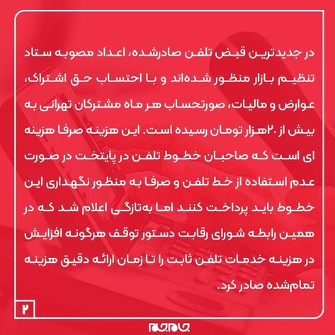 «جام‌جم» از ماجرای هزینه ۲۰هزارتومانی قبوض تلفن‌ثابت گزارش می‌دهد