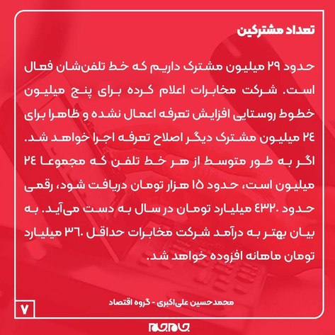عکس | برداشت ۴۰۰۰میلیاردی مخابرات، قانونی یا غیرقانونی؟
