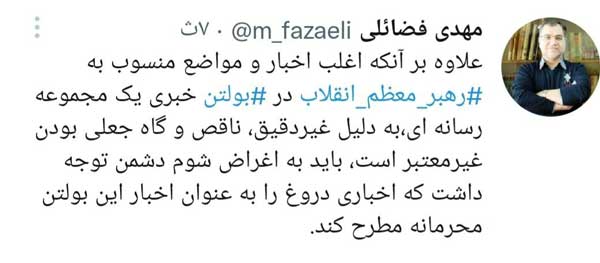 واکنش مهدی فضائلی به برخی بولتن های یکی از بولتن سازان که پس از هک خبرگزاری فارس توسط ضدانقلاب منتشر شده است.