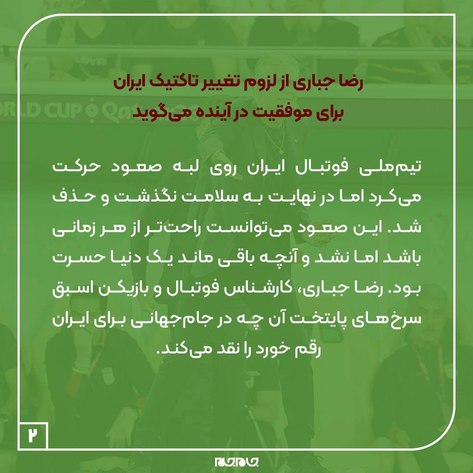 رضا جباری از لزوم تغییر تاکتیک ایران برای موفقیت در آینده می‌گوید