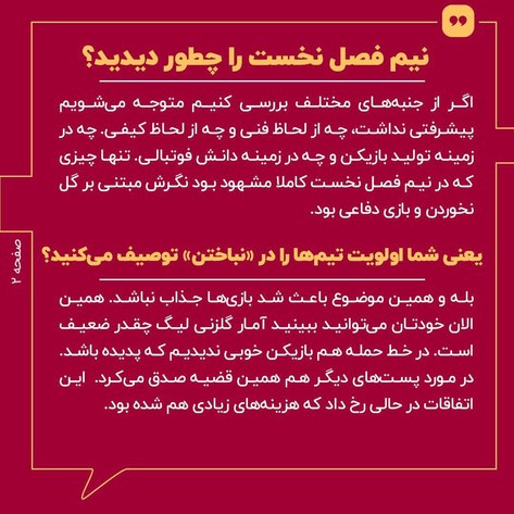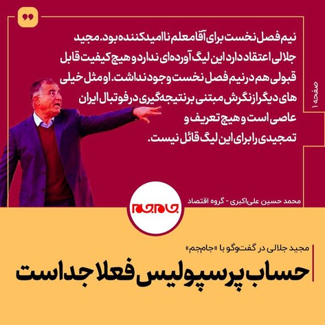 نیم فصل نخست برای آقا معلم ناامیدکننده بود. مجید جلالی اعتقاد دارد این لیگ آوردهای ندارد و هیچ کیفیت قابل قبولی هم در نیم فصل نخست وجود نداشت.او مثل خیلیهای دیگر از نگرش مبتنی بر نتیجه گیری در فوتبال ایران عاصی است و هیچ تعریف و تمجیدی را برای این لیگ قائل نیست.