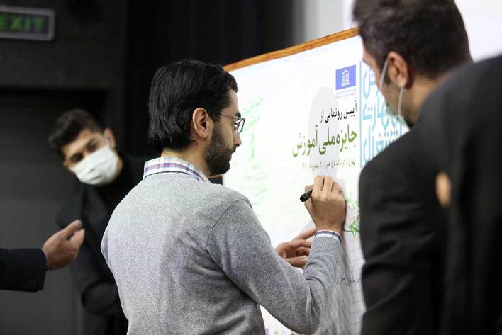 در پایان خانم دکتر ژما جواهری پور معاون آموزش باشگاه تعلیم و تربیت به معرفی جایزه ملی آموزش پرداخت و با حضور بزرگان حاضر در سمینار جناب آقای دکتر تاصر قفلی رییس جامعه خیرین مدرسه ساز،پروفسور علی اکبر فرهنگی چهره ماندگار ایران، دکتر محمد آزین مدیر عامل بنیاد مطالعات تعلیم و تربیت برهان، دکتر مرتضی مجد فر، دکتر احمد قیومی، دکتر عبدالمهدی مستکین،استاد سید احمد محیط طباطبایی،دکتر فاطمه مهاجرانی،مهندس جواد محمودی شهردار بندر خمیر، دکتر محمد اعتباری، منیژه خلیلی معاون مرکز آموزش سازمان حفاظت محیط زیست کشور، دکترمریم ملونی مدیر کل دفتر نوآوری و کسب و کار،دکتر امیر احسانی و دیگر اساتید از جایزه ملی آموزش در کشور رونمایی شد .