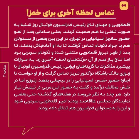جزئیات توافق و حضور قلعه‌ نویی در تیم‌ ملی