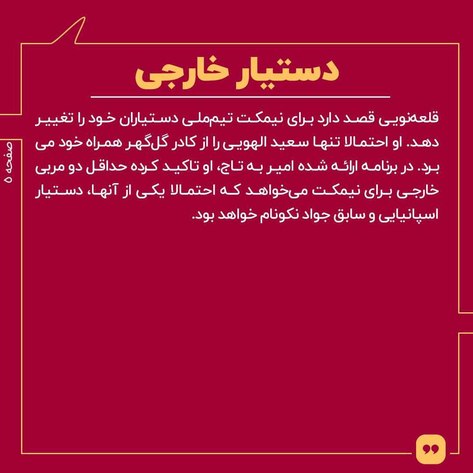 از سانچز تا امیر قلعه‌ نویی؛ این آخرین تصمیم مهدی تاج و فدراسیونش، برای هدایت تیم‌ ملی فوتبال ایران بود. بعد از عدم توافق با مرد اسپانیایی، قلعه‌ نویی و جواد نکونام دو گزینه نهایی روی میز شدند ولی با توجه به ارتباط نزدیک امیر با بعضی از اعضای هیات رئیسه، رای‌گیری به نفع او تمام شد.