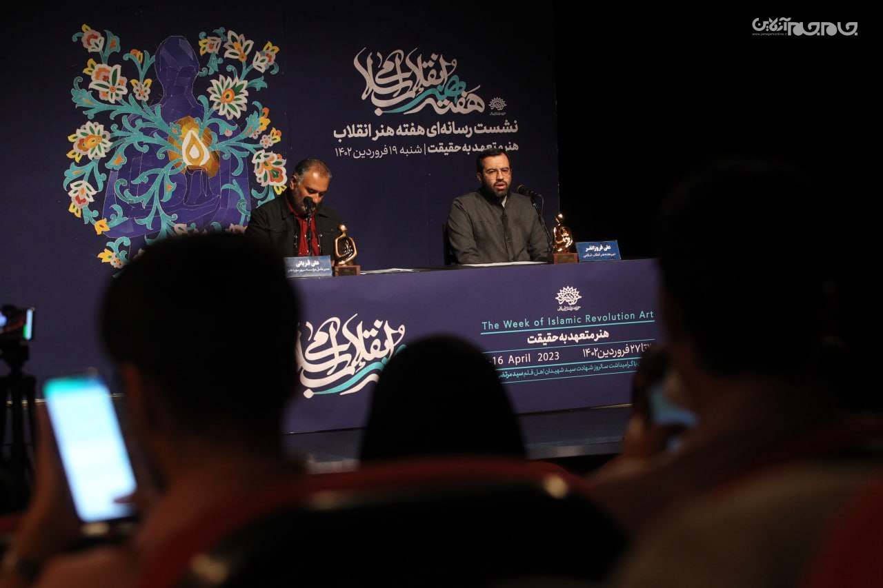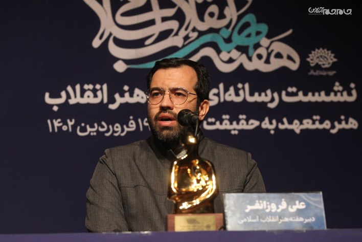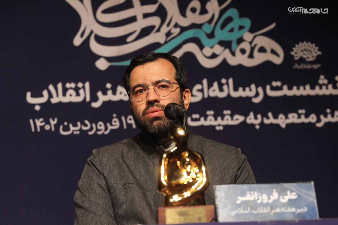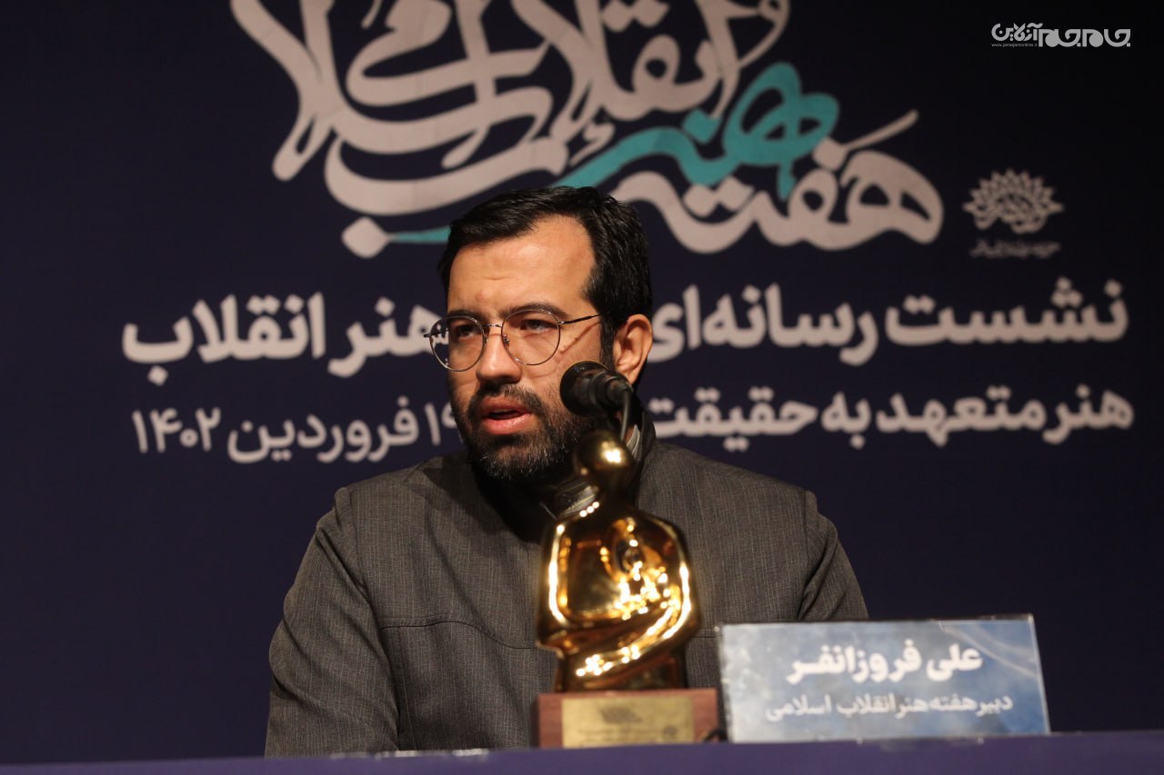 در این نشست که ساعت 11 در تماشاخانه مهر حوزه هنری برپا شد، علی فروزانفر، معاون هنری حوزه هنری و دبیر هفته هنر انقلاب اسلامی، به تشریح برنامههای این رویداد فرهنگی هنری که از 20 فروردین آغاز میشود، پرداخت.عکاس: جام جم