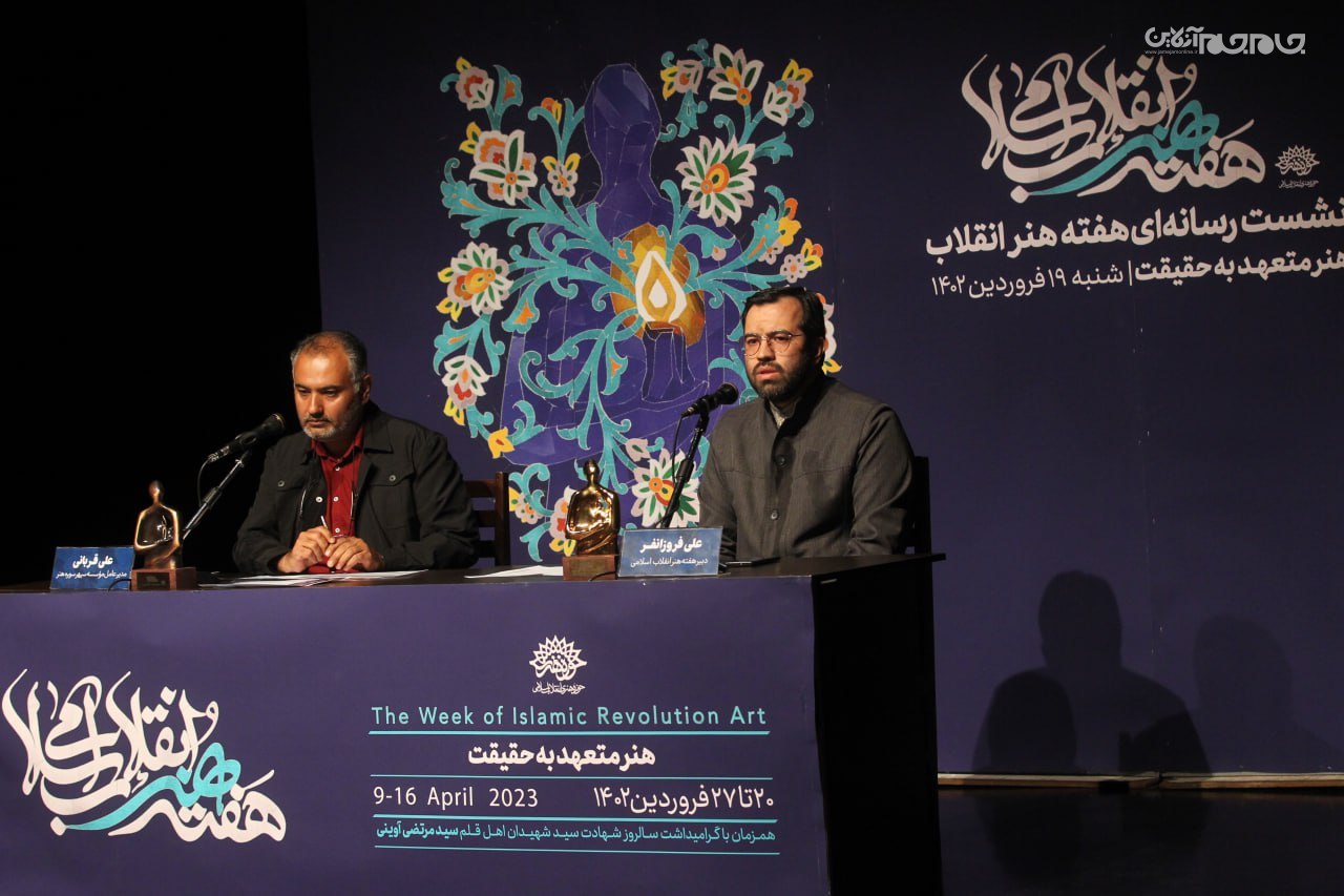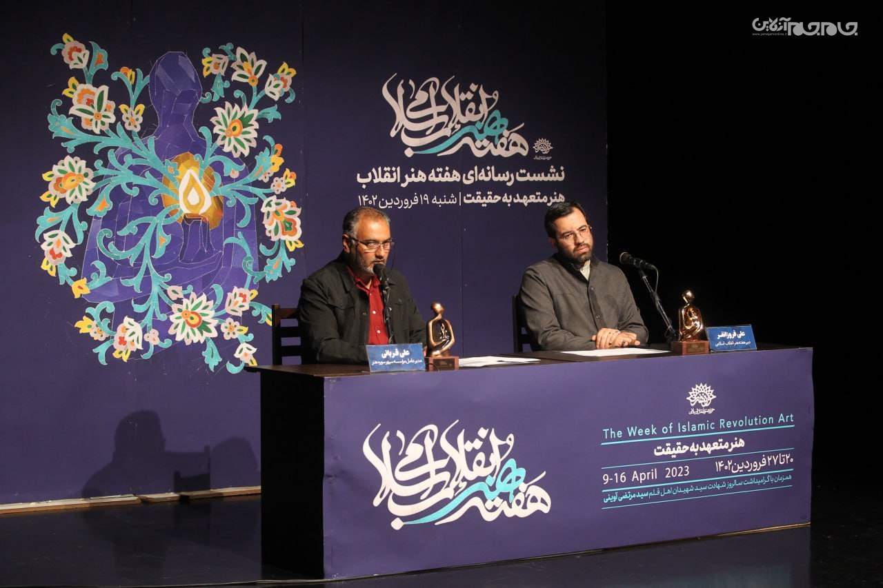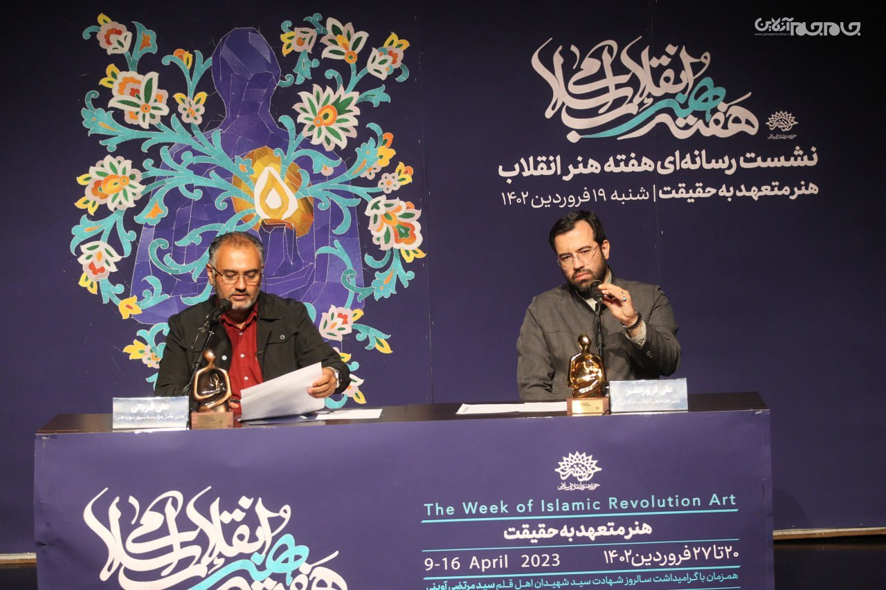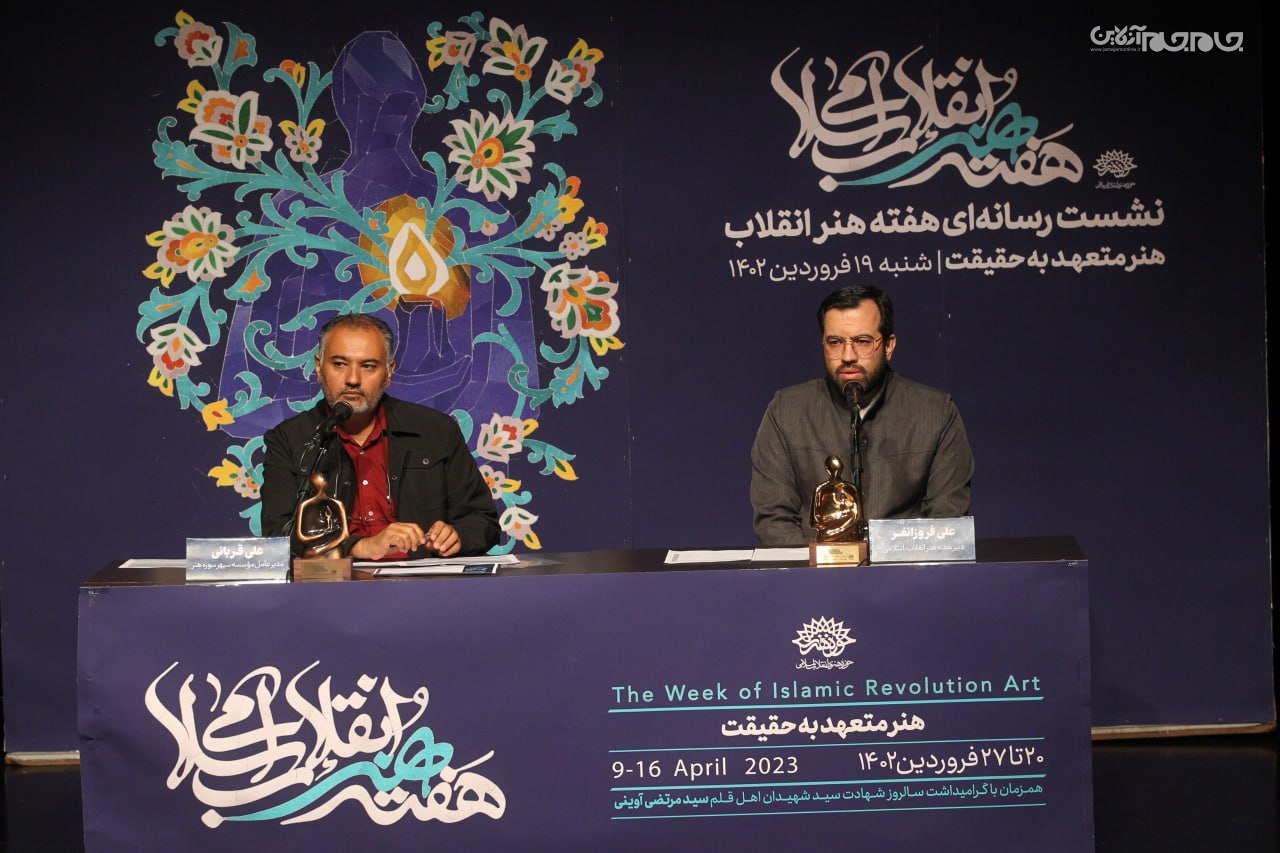در این نشست که ساعت 11 در تماشاخانه مهر حوزه هنری برپا شد، علی فروزانفر، معاون هنری حوزه هنری و دبیر هفته هنر انقلاب اسلامی، به تشریح برنامههای این رویداد فرهنگی هنری که از 20 فروردین آغاز میشود، پرداخت.عکاس: جام جم