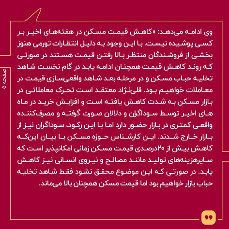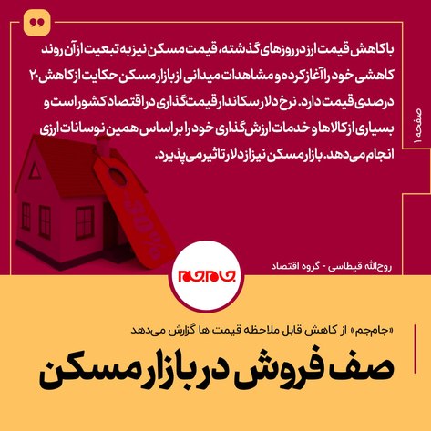 با کاهش قیمت ارز در روزهای گذشته، قیمت مسکن نیز به تبعیت از آن روند کاهشی خود را آغاز کرده و مشاهدات میدانی از بازار مسکن حکایت از کاهش ۲۰درصدی قیمت دارد.