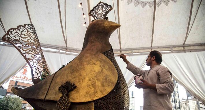 به گزارش جام جم آنلاین، خیمه بزرگ هنرهای عاشورایی همزمان با دهه اول ماه محرم در میدان هفتتیر برپا شد. این خیمه در دهه اول محرم، محل استقرار هنرمندانی است که در عرصه تولید آثار هنری عاشورایی فعالیت میکنند.