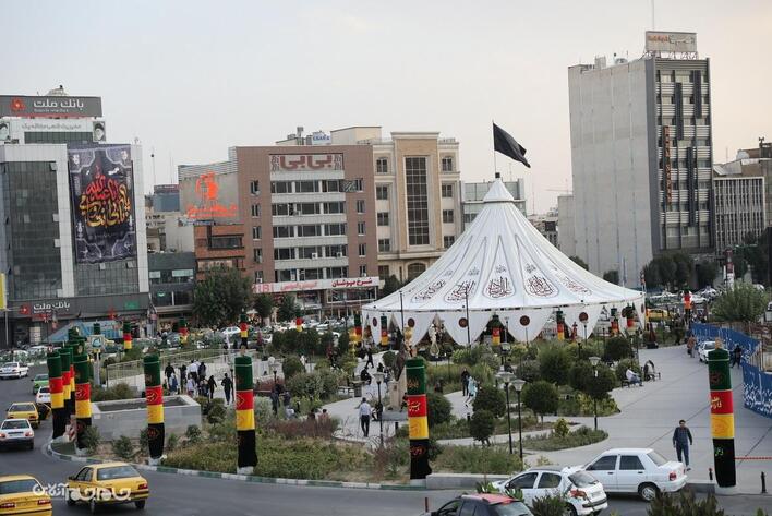 خیمه عاشورایی میدان هفت تیر در طول ماه محرم و صفر، محل برپایی تعزیه و برگزاری نمایشگاه‌ هنرهای عاشورایی می باشد.عکاس: مجید آزاد