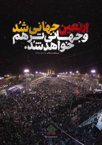 حضرت آیتالله خامنهای: «اربعین جهانی شد و جهانیتر هم خواهد شد؛ این خون حسینبنعلی است که بعد از ۱۴۰۰ سال دارد میجوشد و روزبهروز تازهتر میشود، روزبهروز زندهتر میشود.»