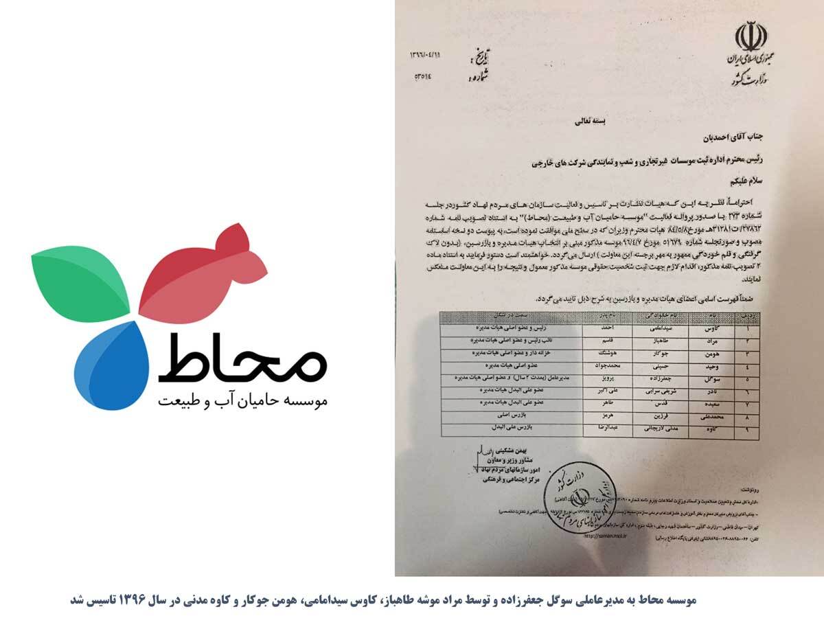 اما مسئول مستقیم پیادهسازی این سند در کشور در دفتر سازمان ملل در ایران یک فرد ایرانی به نام «سوگل جعفرزاده» بوده است و نکته مهم این است که این فرد نیز یکی از مرتبطین همین شبکه جاسوسان محیط زیستی در کشور بوده است و حتی پیش از دستگیری عناصر اصلی این شبکه در زمستان ۱۳۹۶ توسط سازمان اطلاعات سپاه، موسسه جدیدی به نام «محاط» (موسسه حامیان آب و طبیعت) در تیرماه ۱۳۹۶ ایجاد و در آن سوگل جعفرزاده بهعنوان مدیرعامل، کاووس سیدامامی و مراد طاهباز (دو بنیانگذار موسسه جاسوسی میراث پارسیان) به عنوان رئیس و نائب رئیس هیات مدیره این موسسه تازه تاسیس تعیین و هومن جوکار (مدیر پروژه بین المللی یوز در سازمان محیط زیست و از مدیران موسسه جاسوسی میراث پارسیان) و کاوه مدنی (معاون سازمان محیط زیست از شهریورماه ۱۳۹۶) هم به عنوان دیگر مدیران این موسسه تازه تاسیس تعیین میشوند.