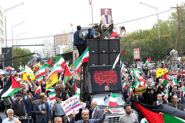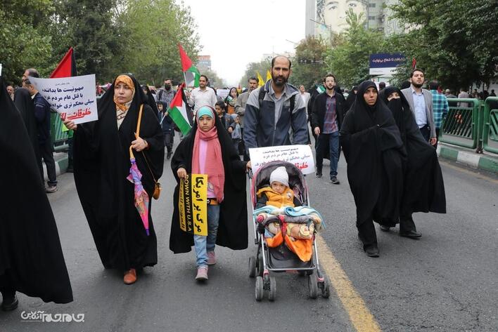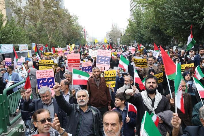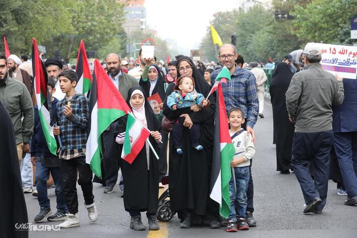 راهپیمایی محکومیت جنایات رژیم کودک‌ کش صهیونیستی و شکرانۀ پیروزی مبارزان فلسطینی، جمعه ۲۱ مهر۱۴۰۲ در تهران برگزار شد. عکاس: مجید آزاد.