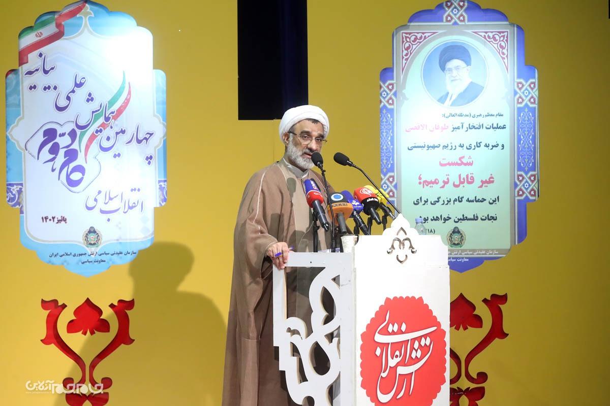 چهارمین همایش علمی بیانیه گام دوم انقلاب اسلامی با محوریت جهاد تبیین و رونمایی از کتاب «جهاد تبیین در گام دوم انقلاب اسلامی»، صبح امروز با حضور حجت الاسلام والمسلمین عبدالحسین خسروپناه دبیر شورای عالی انقلاب فرهنگی، حجت الاسلام عباس محمدحسنی رئیس سازمان عقیدتی سیاسی ارتش در مرکز همایش های کوثر سازمان عقیدتی سیاسی ارتش برگزار شد.