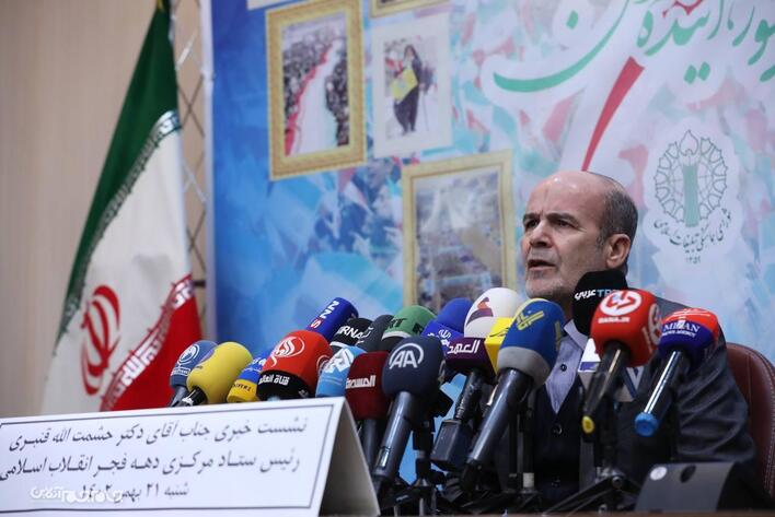 نشست خبری اعلام اهم برنامه‌های مراسم جشن سالگرد پیروزی انقلاب اسلامی توسط دکتر حشمت الله قنبری، رئیس ستاد دهه فجر، شنبه ۲۱ بهمن در مرکز شورای هماهنگی تبلیغات اسلامی برگزار شد.عکاس: مجید آزاد.