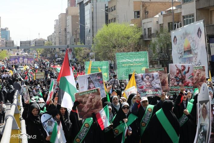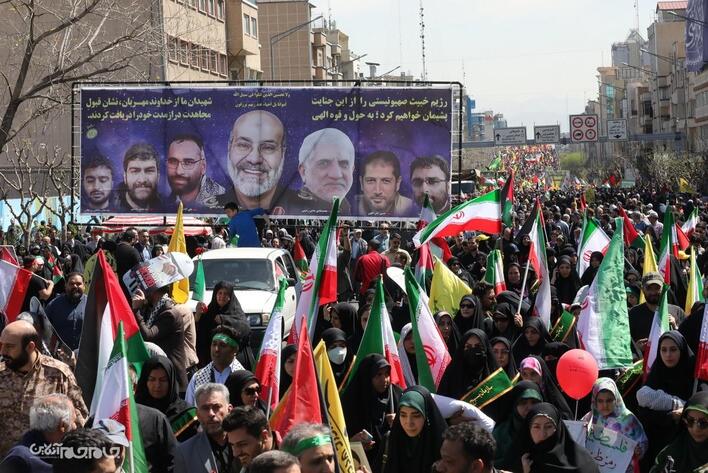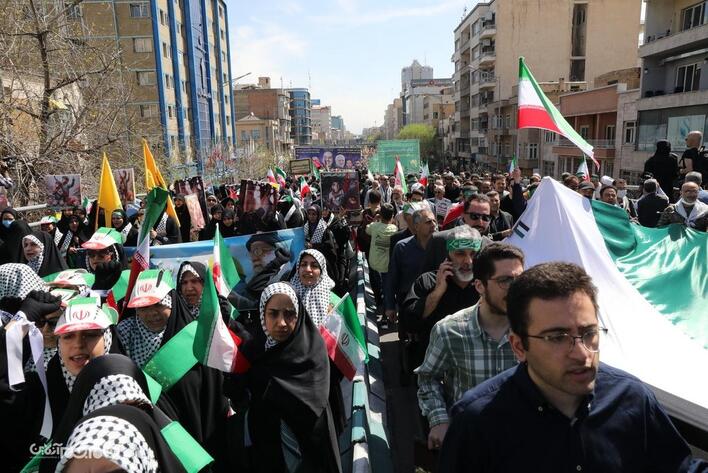 مراسم روز جهانی قدس همزمان با سراسر کشور با حضور مسئولین در تهران برگزار شد.عکاس: مجید آزاد.