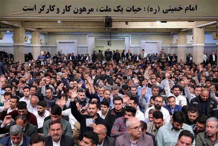 در دومین ماه از سال «جهش تولید با مشارکت مردم» و به مناسبت هفته کار و کارگر، جمعی از کارگران سراسر کشور صبح امروز (چهارشنبه) با حضور در حسینیه امام خمینی(ره) با حضرت آیت الله خامنه ای، رهبر انقلاب اسلامی دیدار کردند.
