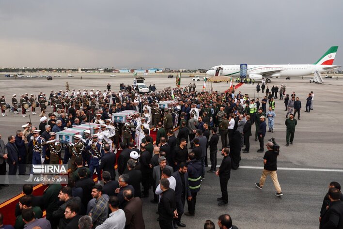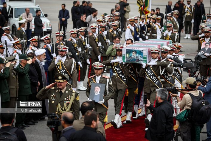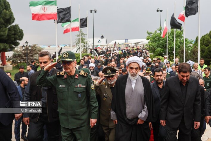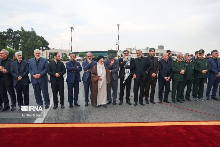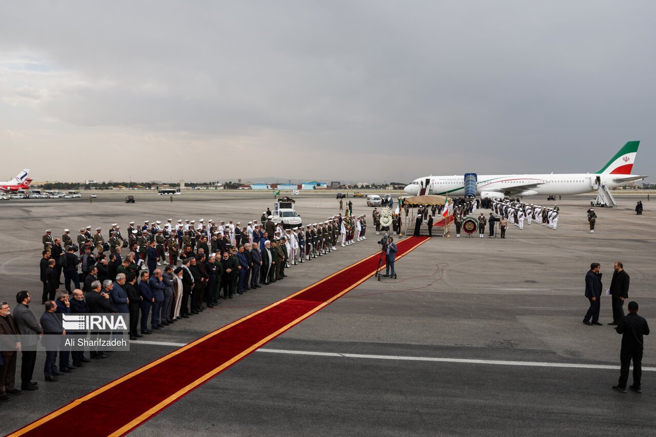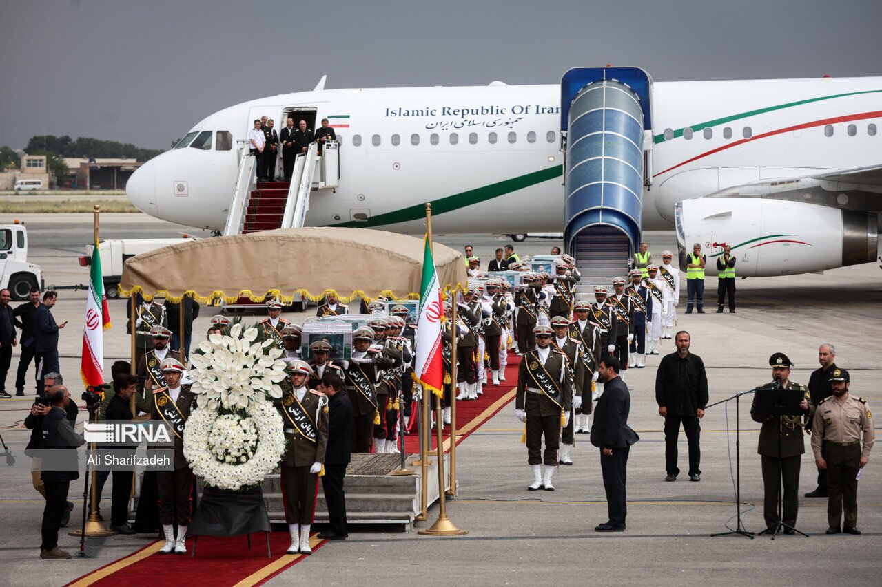 پیکر آیت الله سید ابراهیم رئیسی رئیس جمهور و شهدای خدمت، ظهر سه شنبه ( ۱ خرداد ۱۴۰۳) با استقبال اعضا هیئت دولت و مسئولان لشکری و کشوری وارد فرودگاه مهرآباد شد.