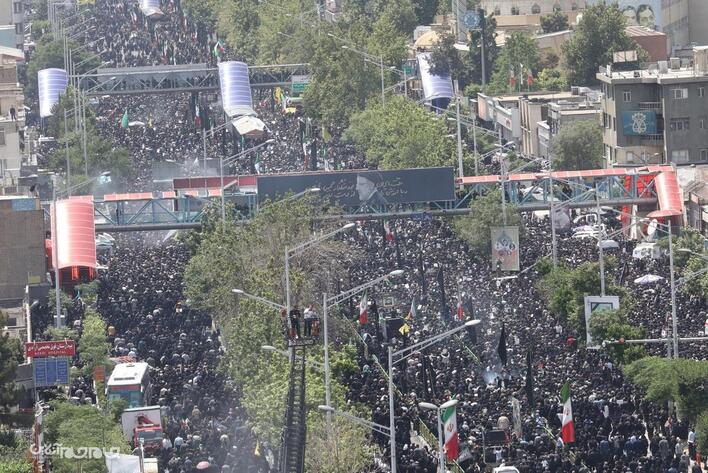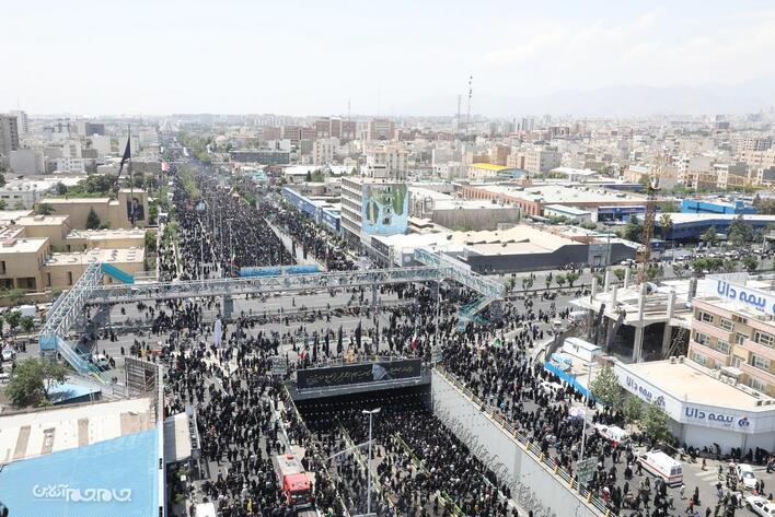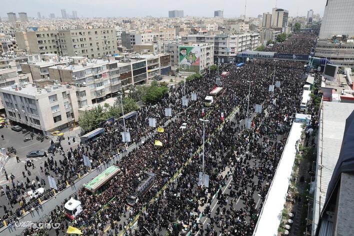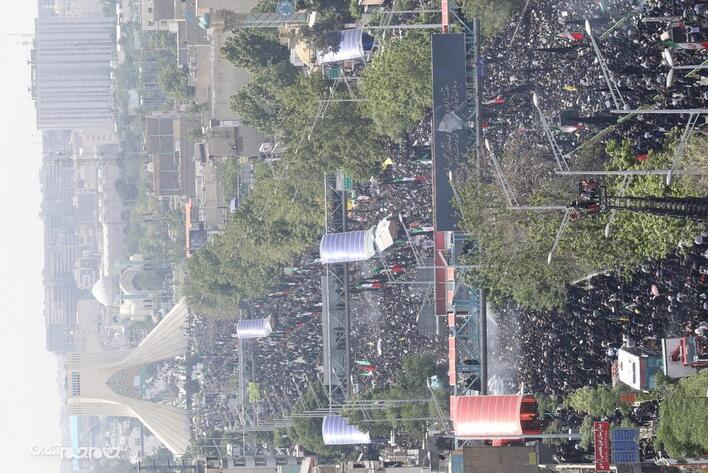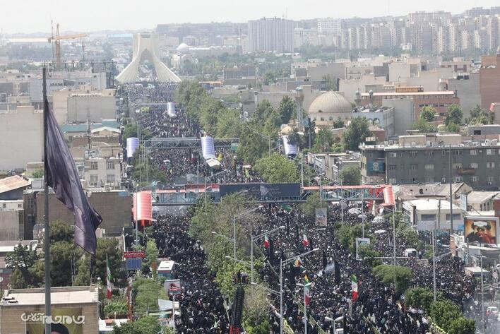 پیکر شهید آیت الله سید ابراهیم رئیسی رئیس جمهور و شهدای خدمت، صبح چهارشنبه ( ۲ خرداد ۱۴۰۳) بعد از اقامه نماز توسط مقام معظم رهبری از دانشگاه تهران تا میدان آزادی تشییع شد.مجید آزاد.