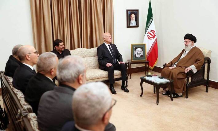 «قیس سعید» رئیس‌جمهور تونس، عصر امروز در دیدار با رهبر انقلاب اسلامی، به نمایندگی از دولت و ملت این کشور، ضایعه درگذشت رئیس جمهور و وزیر امور خارجه و همراهان ایشان را به حضرت آیت‌ الله خامنه‌ ای و ملت ایران تسلیت گفت.