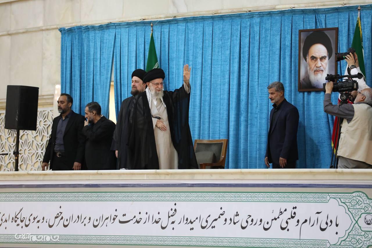 حضرت آیت‌ الله خامنه‌ ای رهبر انقلاب اسلامی صبح امروز (دوشنبه) با حضور در مراسم سی‌وپنجمین سالگرد رحلت حضرت امام خمینی (رحمه‌الله) به سخنرانی در جمع مشتاقان و دلدادگان بنیان‌گذار جمهوری اسلامی ایران پرداختند.عکاس: مجید آزاد.