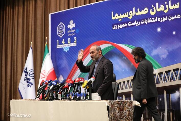 نشست خبری پیمان جبلی، رئیس سازمان صداوسیما با اهالی رسانه، یکشنبه ۲۰ خرداد ۱۴۰۳ برگزار و به پرسشهای خبرنگاران درباره مناظرههای انتخاباتی، فرایندهای تولید محتوا، ارزیابی و پخش مستندهای انتخاباتی، اقدامات رسانه ملی برای مقابله با تبلیغات رسانههای بیگانه و همچنین رصد و مقابله رسانهای با هجمههای رسانهای پاسخ داده شد.عکاس: مجید آزاد.