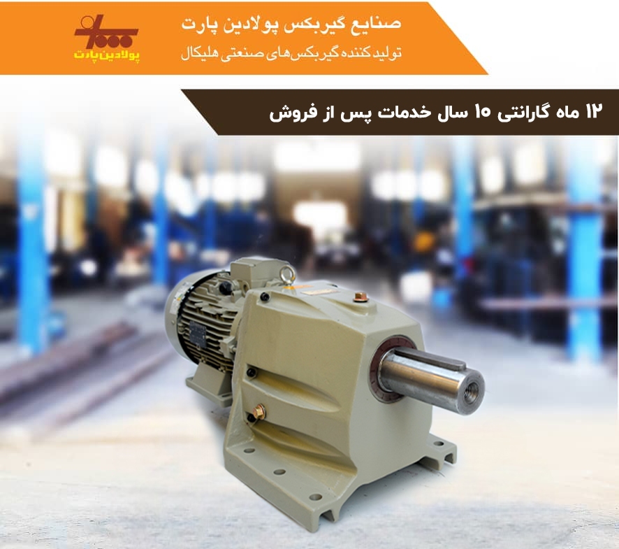 • برند تولید کننده : پولادین پارت با بیش از یک قرن تجربه در تولید گیربکس هلیکال یکی از برندهای مطرح بازار گیربکس صنعتی است. محصولات ما با داشتن کیفیتی بالا و خدمات پس از فروش و همچنین 12 ماه گارانتی بی قید شرط، مشتریان را آسوده خاطر می کند.