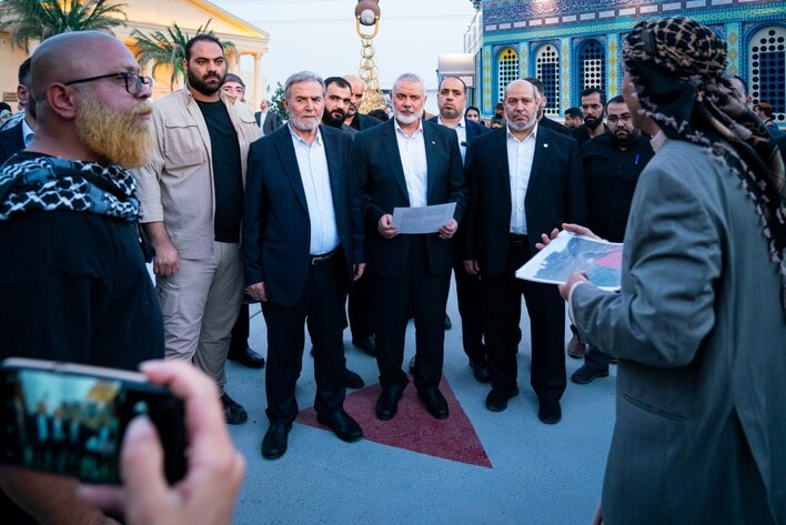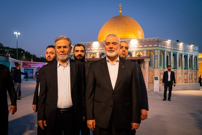 شهید اسماعیل هنیه رئیس دفتر سیاسی حماس و زیاد نخاله دبیرکل جهاد اسلامی فلسطین شب گذشته پس از حضور در مراسم تحلیف رئیس جمهور به برج میلاد تهران رفتند و از تمپارک «سرزمین تمدن ها» بازدید کردند.منبع: سازمان هنری رسانهای اوج