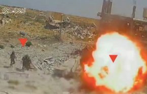این صحنهها نشان میدهد که نیروهای القسام در شرق خان یونس، یک وسیله انفجاری را در میان نیروهای پیاده نظام صهیونیستی، منفجر و آنان را به هلاکت رسانده اند.