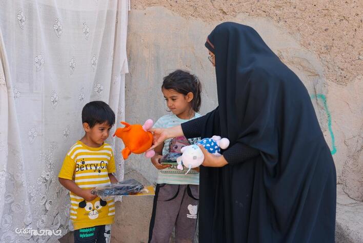 به گزارش جام جم آنلاین، گروه جهادی شهدا به مناسبت سالروز شهادت حضرت رقیه (س) با پویش کودکان مکتب حسینی به شرق کشور رفت و در این پویش که شامل عروسک، کفش، کیف، بسته معیشتی به ارزش بیش از ۱۰۰ میلیون تومان بود، در روستای ترخاص شهرستان خوشاب میان کودکان یتیم و کم برخوردار و خانوادههای آنهای توزیع شد.