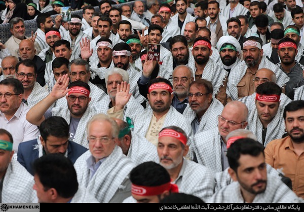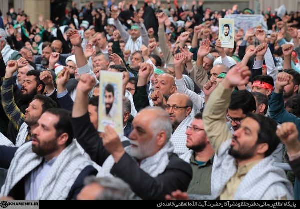 در پنجمین روز هفته دفاع مقدس، جمعی از طلایهداران، خانوادههای شهدا، هنرمندان، نویسندگان و امدادگران و پیشکسوتان و فعالان دفاع مقدس صبح امروز (چهارشنبه) با حضور در حسینیه امام خمینی(ره) با حضرت آیتالله خامنهای رهبر انقلاب اسلامی دیدار کردند.