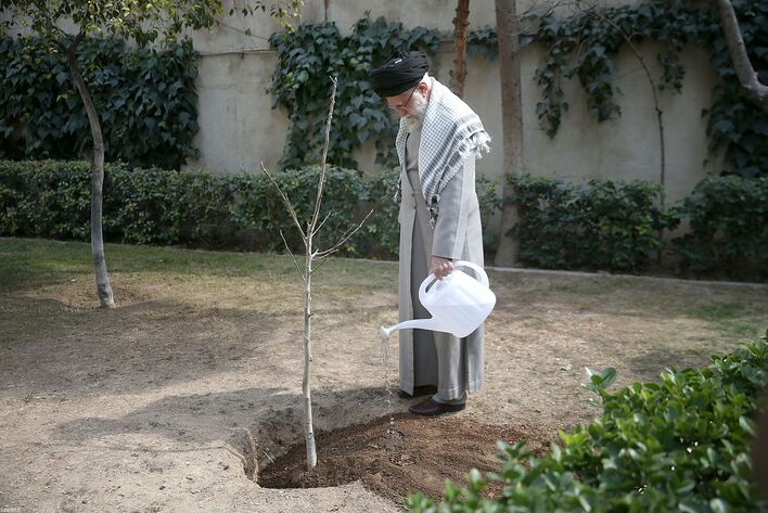 حضرت آیت‌ الله خامنه‌ ای، رهبر انقلاب اسلامی در هفته منابع طبیعی و همزمان با روز درختکاری صبح امروز چهارشنبه سه اصله نهال کاشتند.