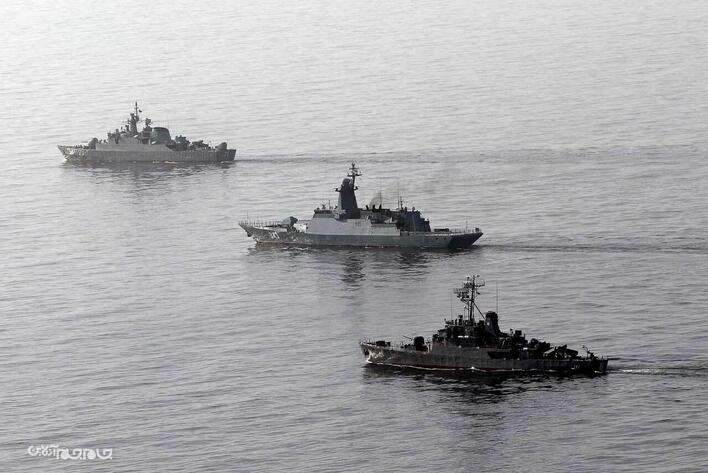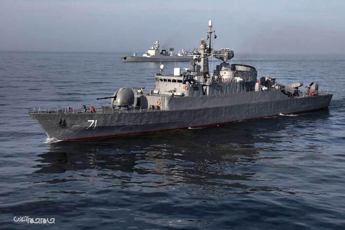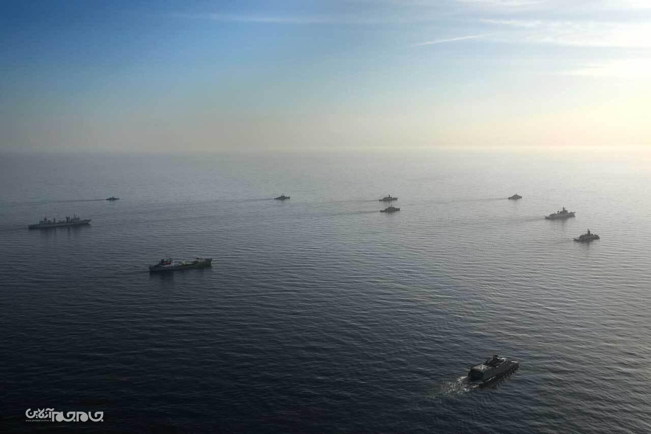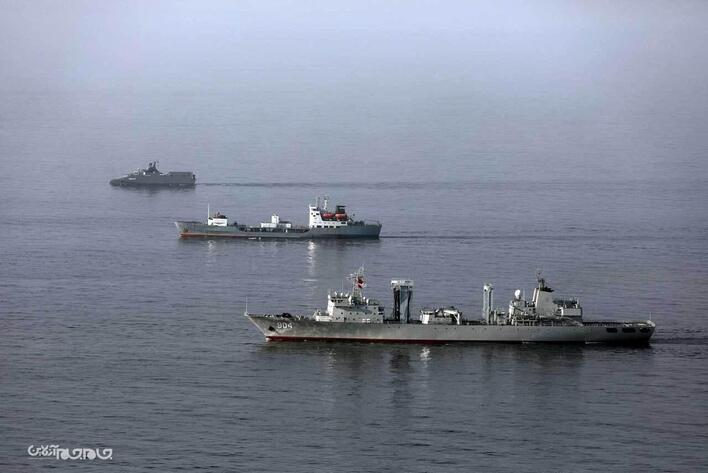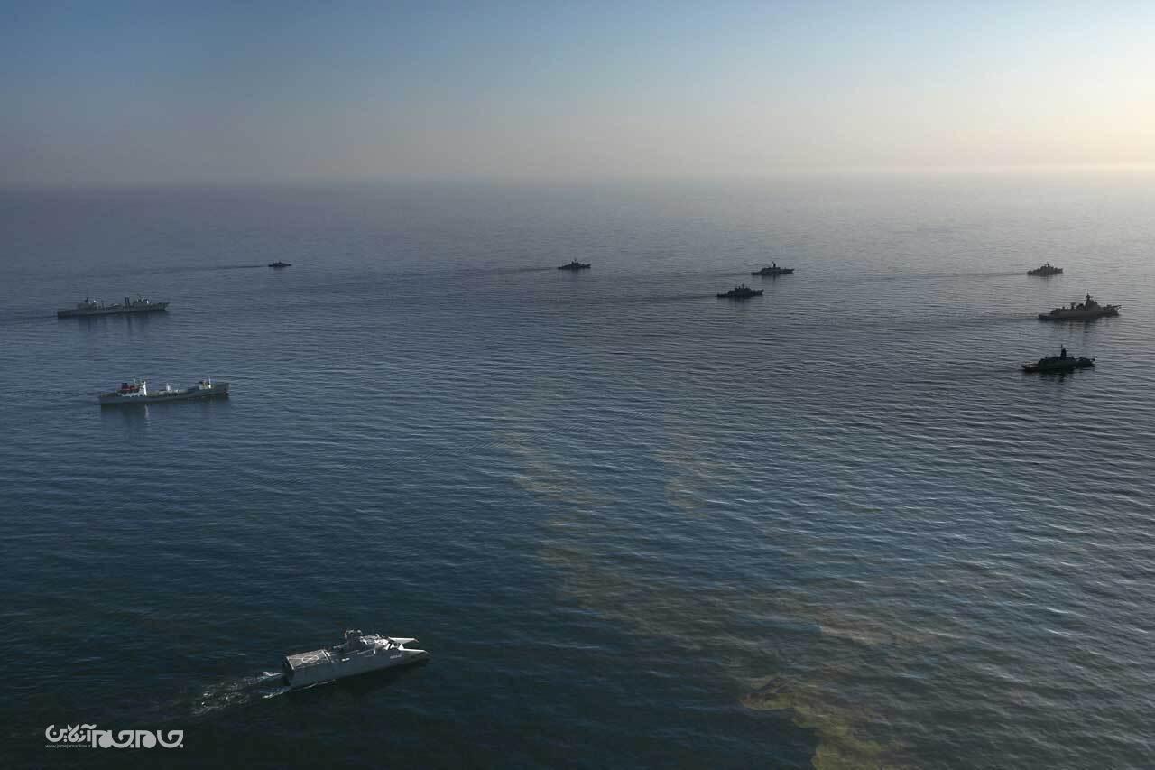 در دومین روز از رزمایش مرکب کمربند امنیت دریایی ۲۰۲۵ ، یگان‌های شناور ایران، جمهوری خلق چین و فدراتیو روسیه تمرین «Photo Ex» و صورت‌بندی و آرایش آفندی را با موفقیت انجام دادند.عکاس: مسعود نظری