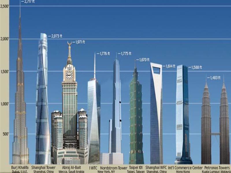 بلندترین ساختمان جهان با ارتفاع 2715 فوت (828 متر) در ژانویه 2010، شش سال پس از آغاز کاوش ها افتتاح شد.جالب است بدانید که 13000 کارگر روز و شب زحمت کشیدند و در عرض سه روز یک طبقه جدید را ساختند!