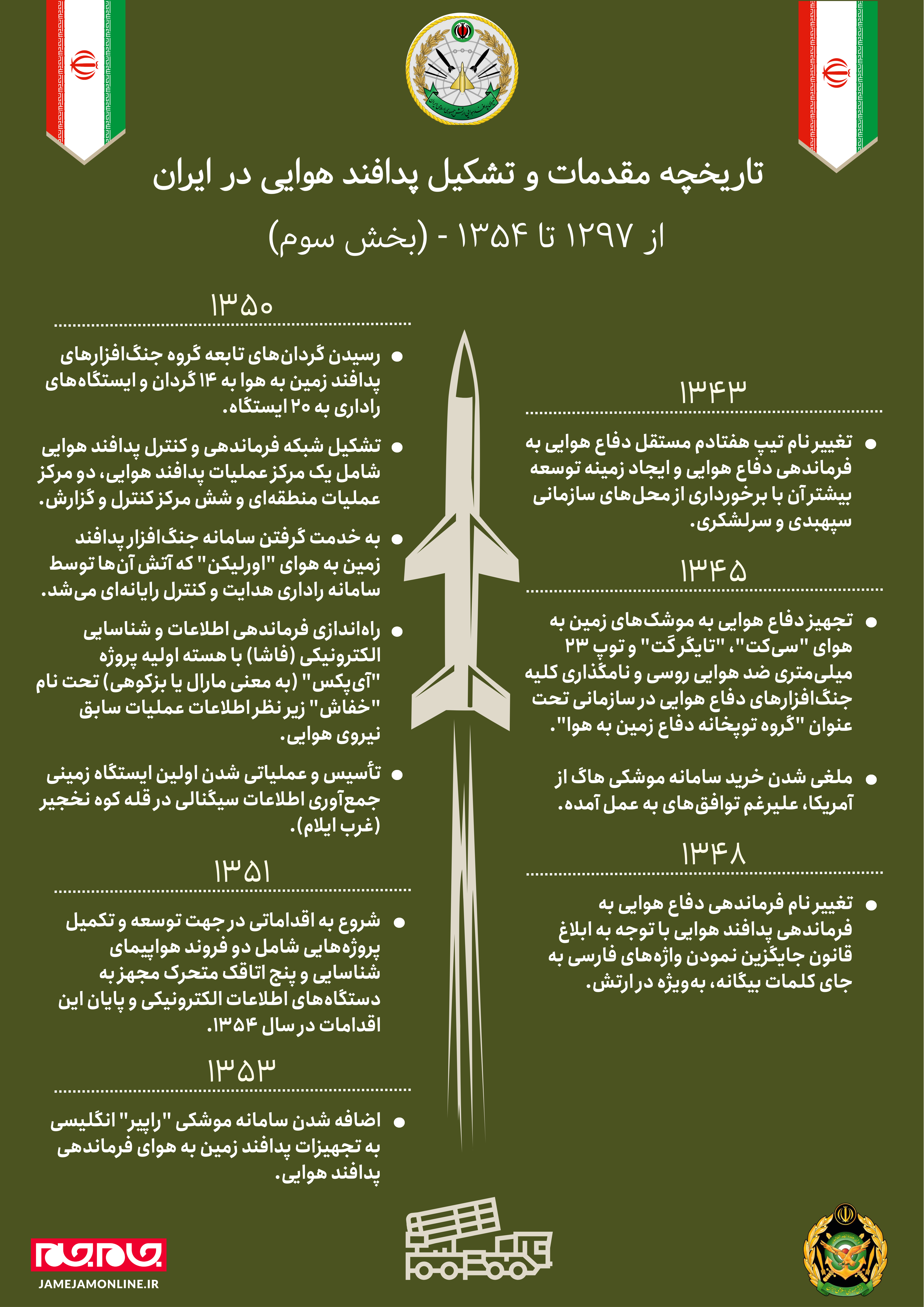 1350: رسیدن گردانهاي تابعه گروه جنگافزارهاي پدافند زمين به هوا به 14 گردان و ايستگاههاي راداری به 20 ايستگاه.
