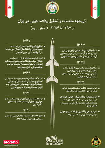 1345: تجهیز دفاع هوايي به موشكهاي زمين به هواي "سيكت" ، "تايگر كت" و توپ 23 ميلي متري ضد هوايي روسي و نامگذاری كليه جنگافزارهاي دفاع هوايي در سازماني تحت عنوان "گروه توپخانه دفاع زمين به هوا".