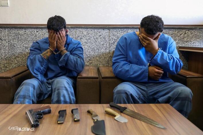 دو زورگیر که کلکسیونی از جرایم را در پرونده خود دارند، هفت دقیقه بعد از زورگیری از زوج عکاس در غرب تهران و توسط ماموران سرکلانتری دوم پلیس پایتخت دستگیر شدند. عکاس: مجید آزاد