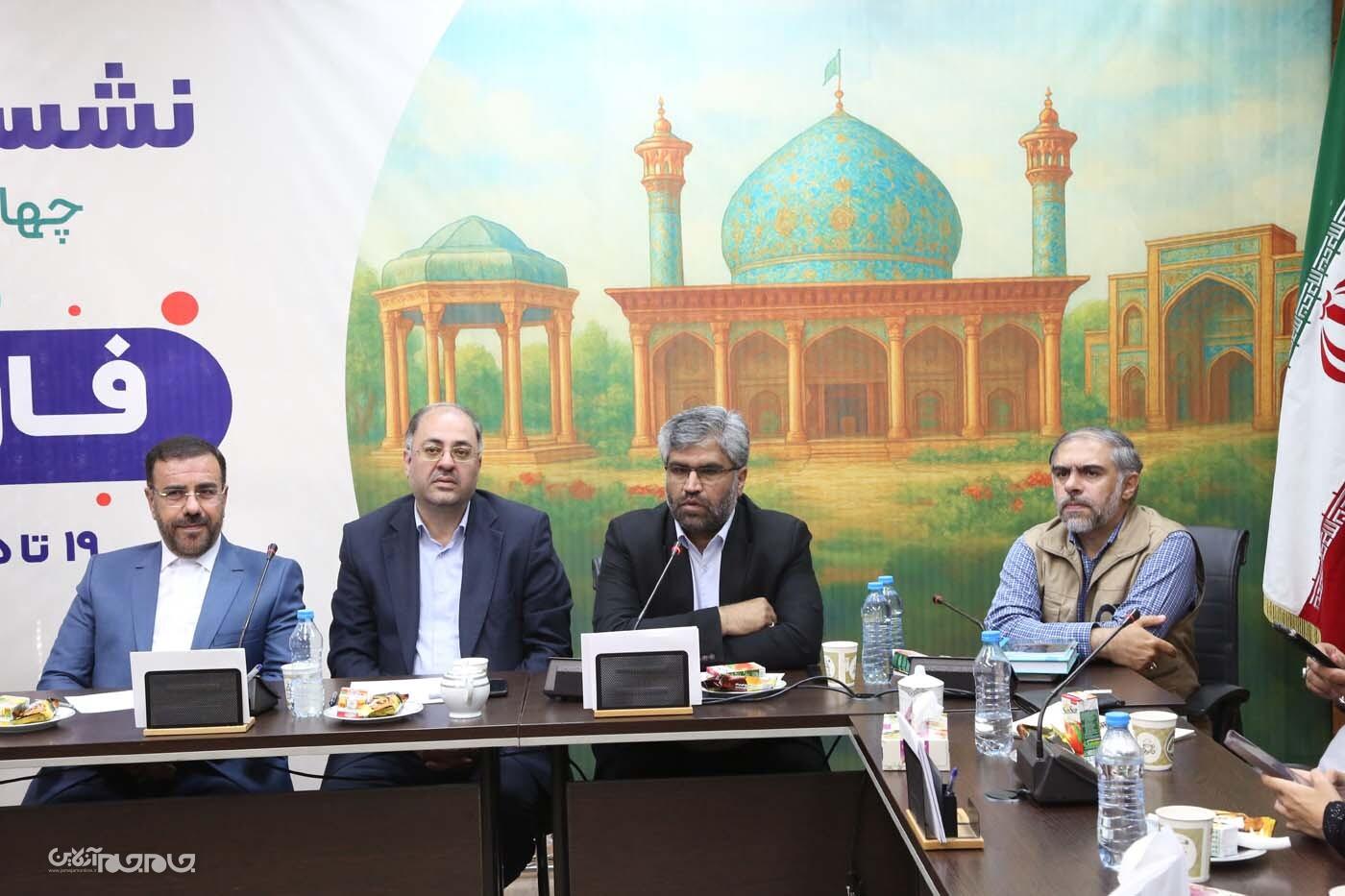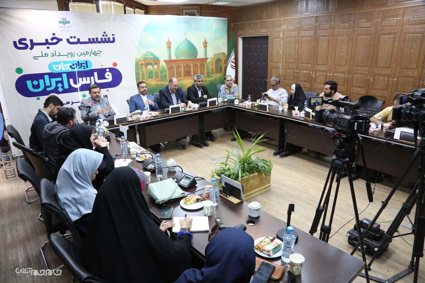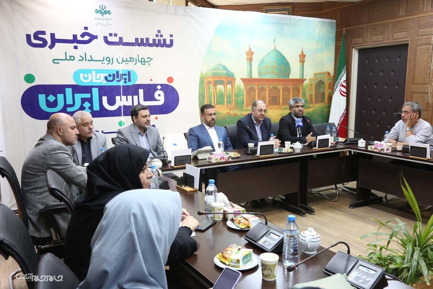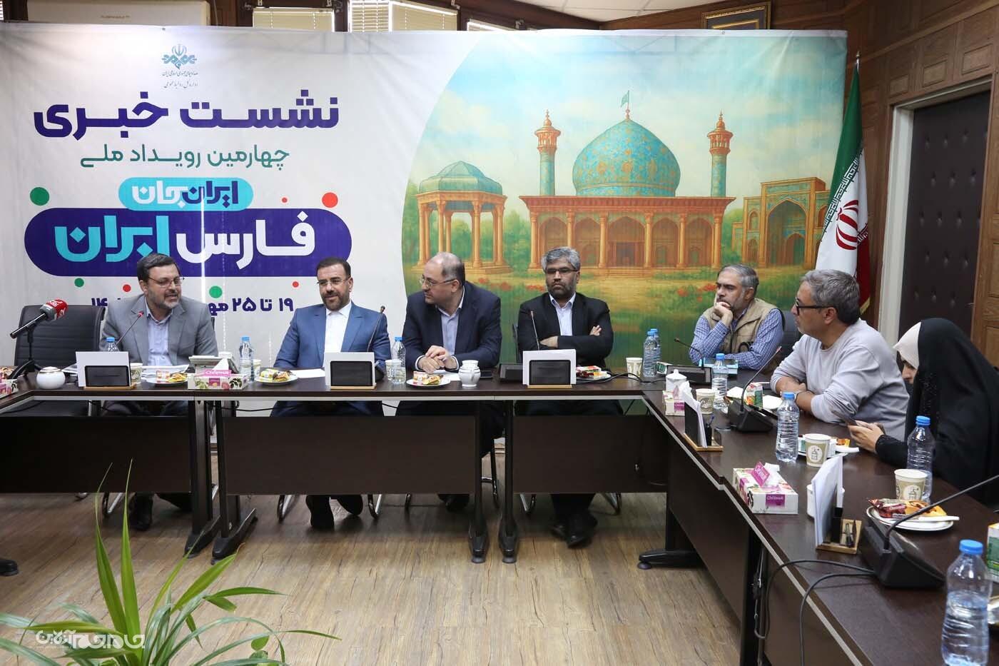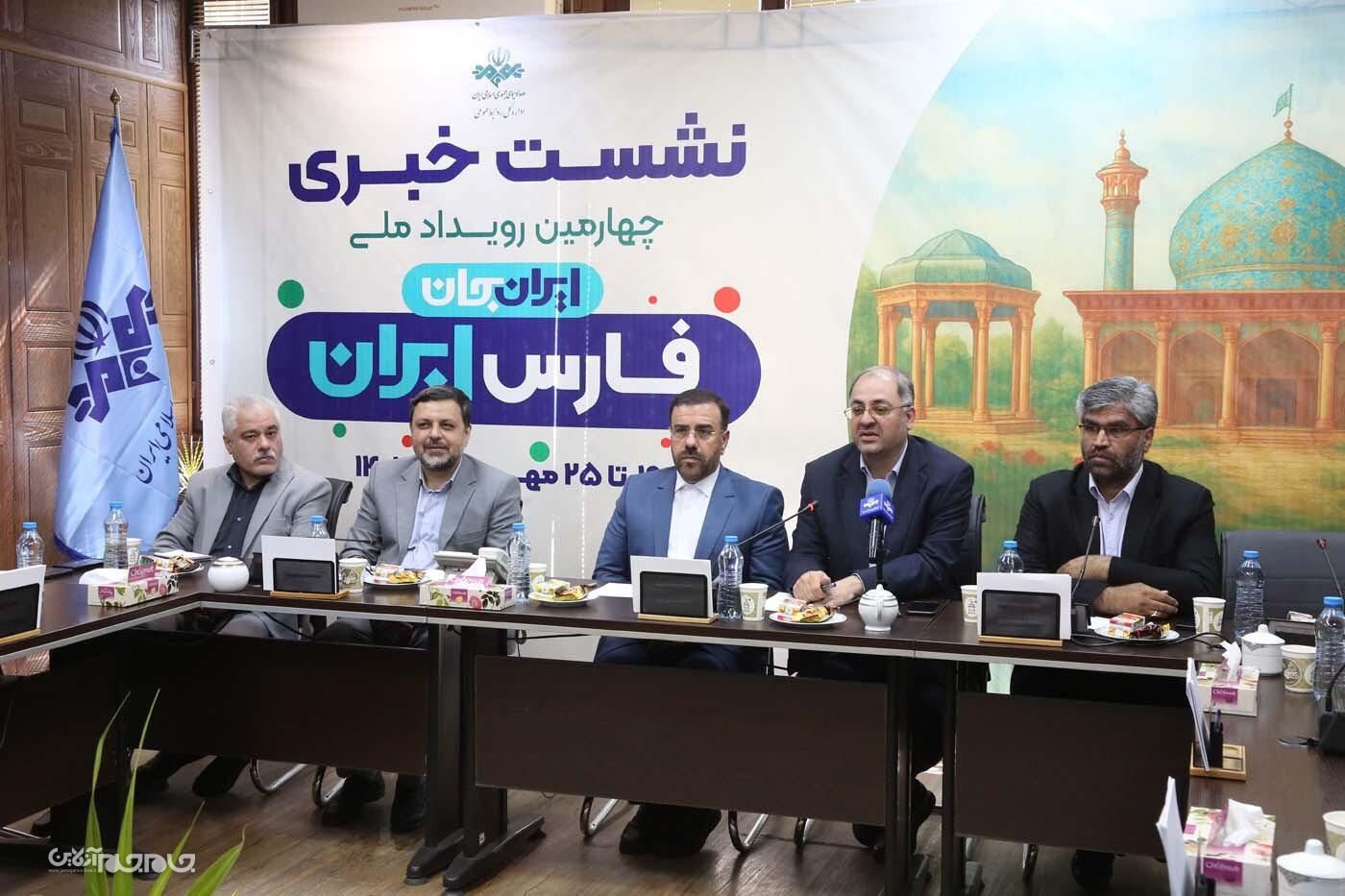 نشست خبری «ایران جان، فارس ایران» با حضور علیرضا کیخا، معاون امور استانهای سازمان صدا و سیما؛ حسینعلی امیری، استاندار فارس؛ امیر رئوف، مدیر کل صدا و سیمای استان فارس؛ محسن شاکرینژاد، رئیس مرکز تحقیقات صدا و سیما و حسین فدایی، مدیر کل روابط عمومی صدا و سیما امروز ۱۴ مهرماه در ساختمان روابط عمومی صدا و سیما برگزار شد. عکاس: یدالله عبدی