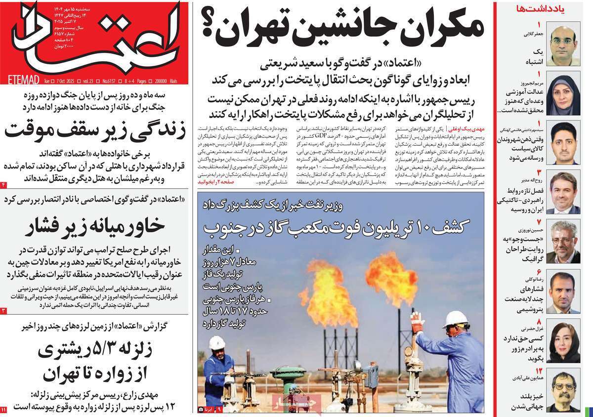 صفحات‌نخست‌روزنامه ها‌ی سه‌شنبه‌۱۵‌مهرماه